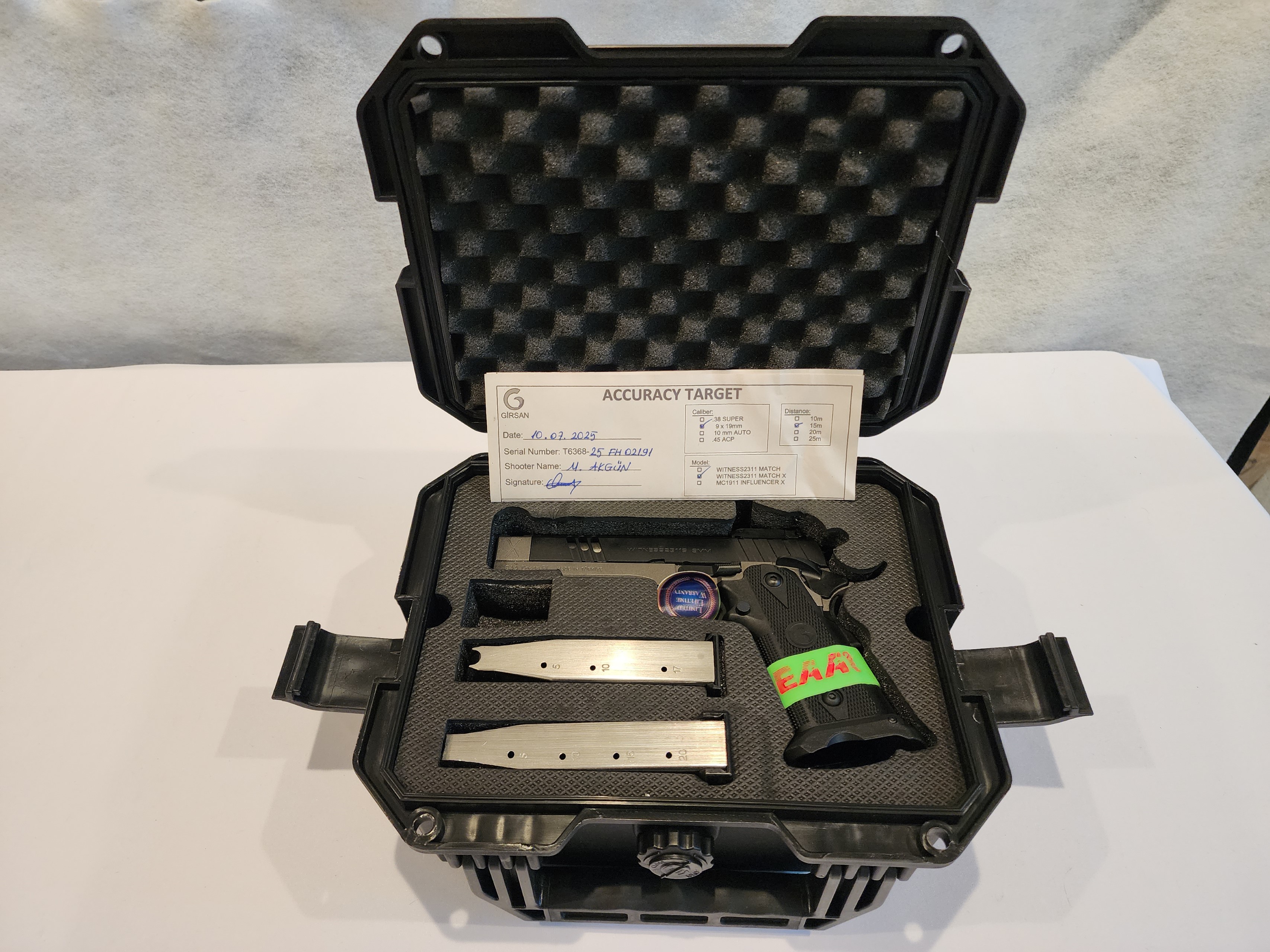 This is a sweet ass gun...fits great in the hand, looks fantastic, and has great reviews. Comes with a nice hard case, 2 mags and all kinds of swagger. Shoot us an e-mail or give us a call on this one!