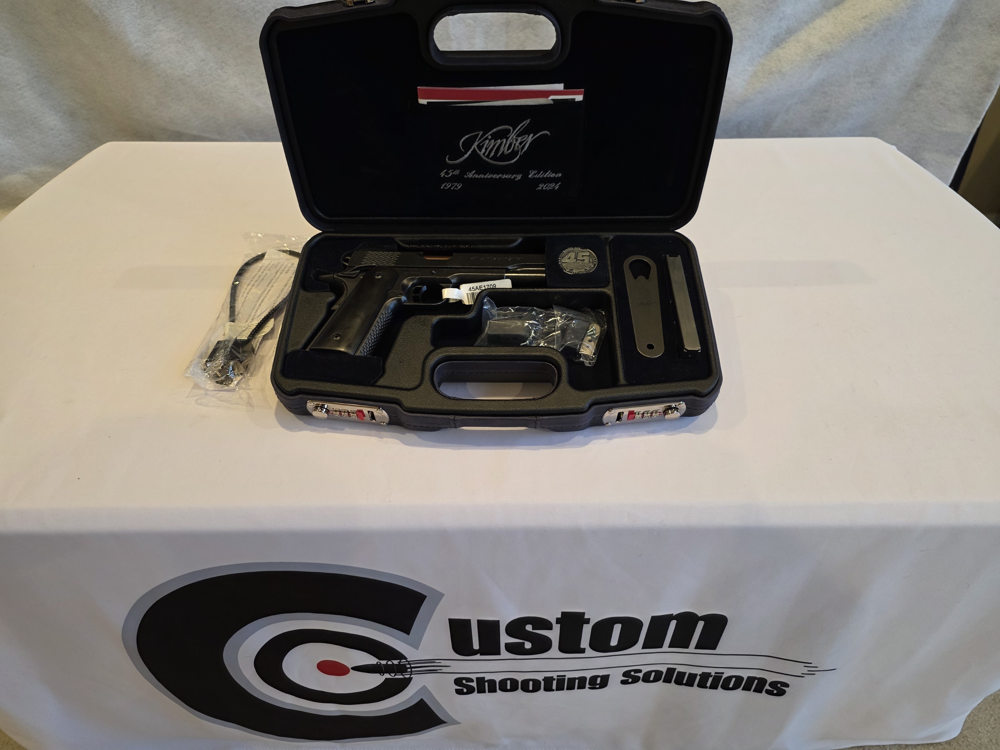This is a beautiful gun which comes beautifully presented in a very upscale case. It's a Kimber so you know it's quality built. Comes with 2 mags, challenge coin, barrel wrench and gun lock. This is a nice collectible for anyone who enjoys a solid 1911 or is a Kimber fan.