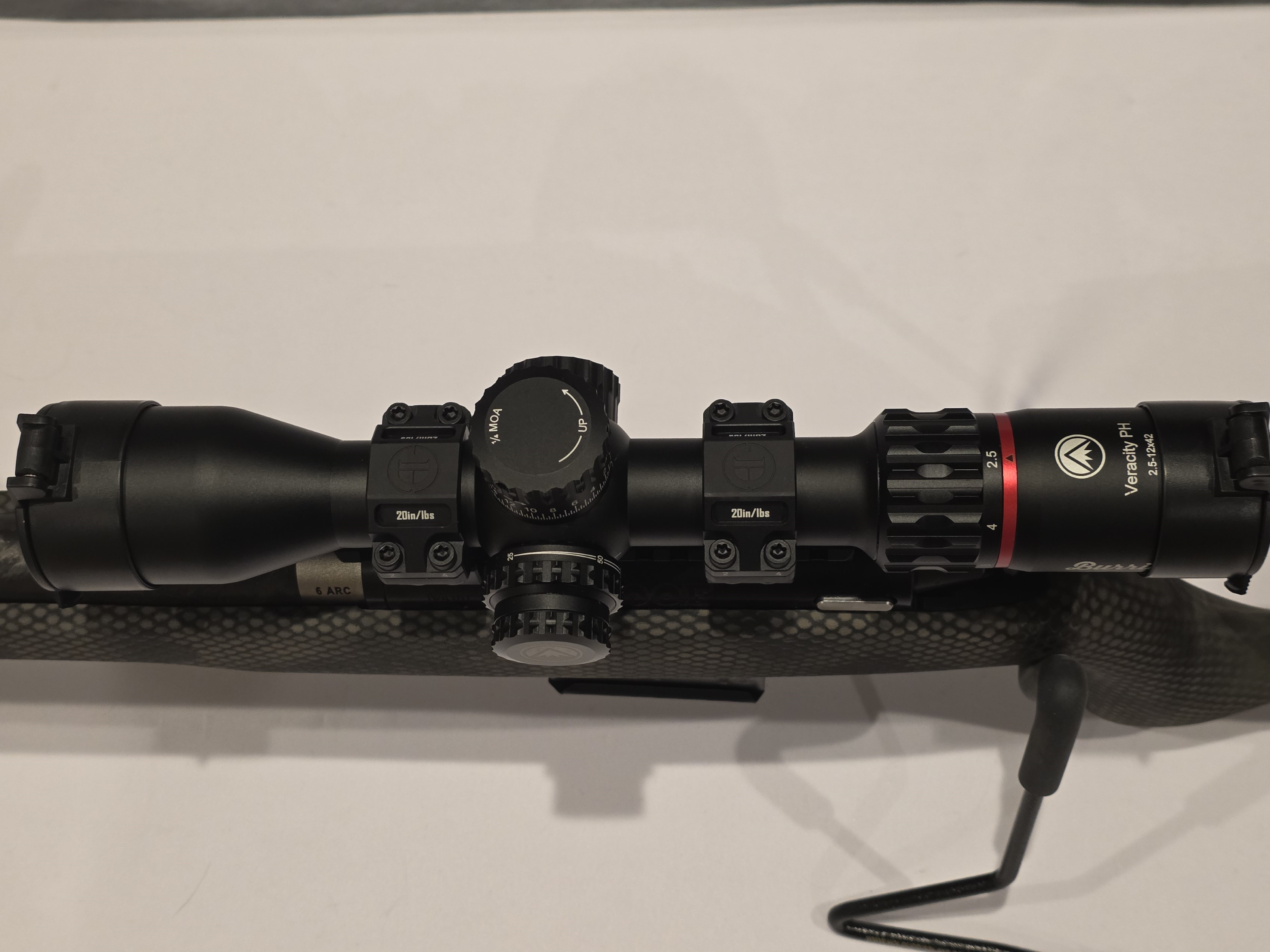 This is one of the sharpest rifles we've had in our hands ever. It's super lite with the carbon fiber stock AND barrel and the fit and finish is incredible. Comes ready for anything out of the box with a Zermatt Arms Origin action and a TriggerTech trigger. Weight is 6lbs. 7oz. and barrel length is 16.5". The 6mm ARC is an extremely flat shooting round that is great for competition, varmint or whitetail. We've topped it off with a phenomenal Burris Veracity PH 2.5x12x42. It's incredible...simply stated. If you haven't checked these scopes out take a look here: https://www.youtube.com/watch?v=nEVSf9v27ZU